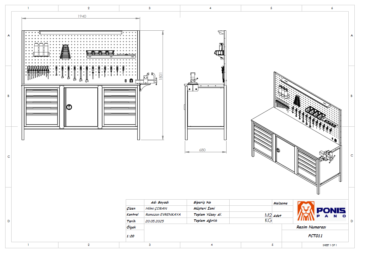 - Çekmecelerde ağır sanayi tipi ve uzun ömürlü rulmanlı çelik raylar kullanılmaktadır.