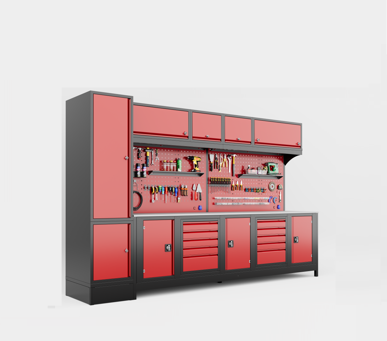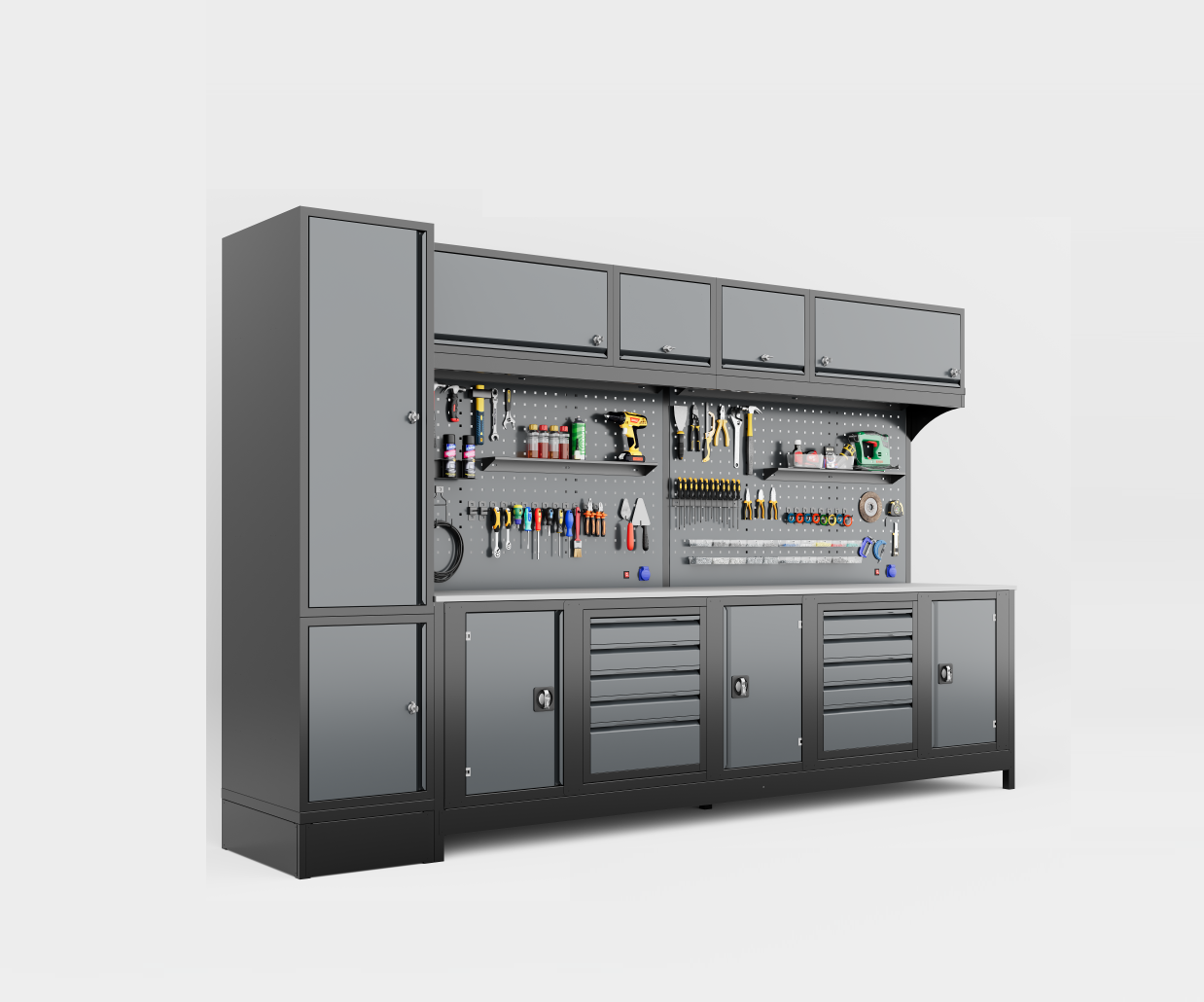 3 Metre Üst Dolaplı Modüler Çalışma Tezgahı