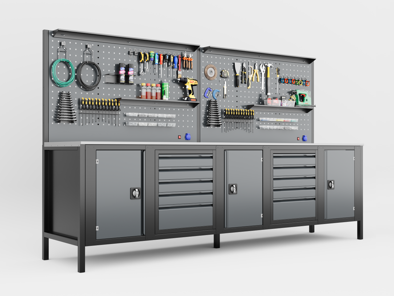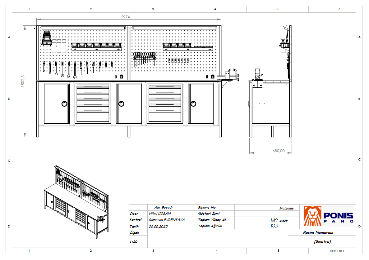 - Çekmecelerde ağır sanayi tipi ve uzun ömürlü rulmanlı çelik raylar kullanılmaktadır.
