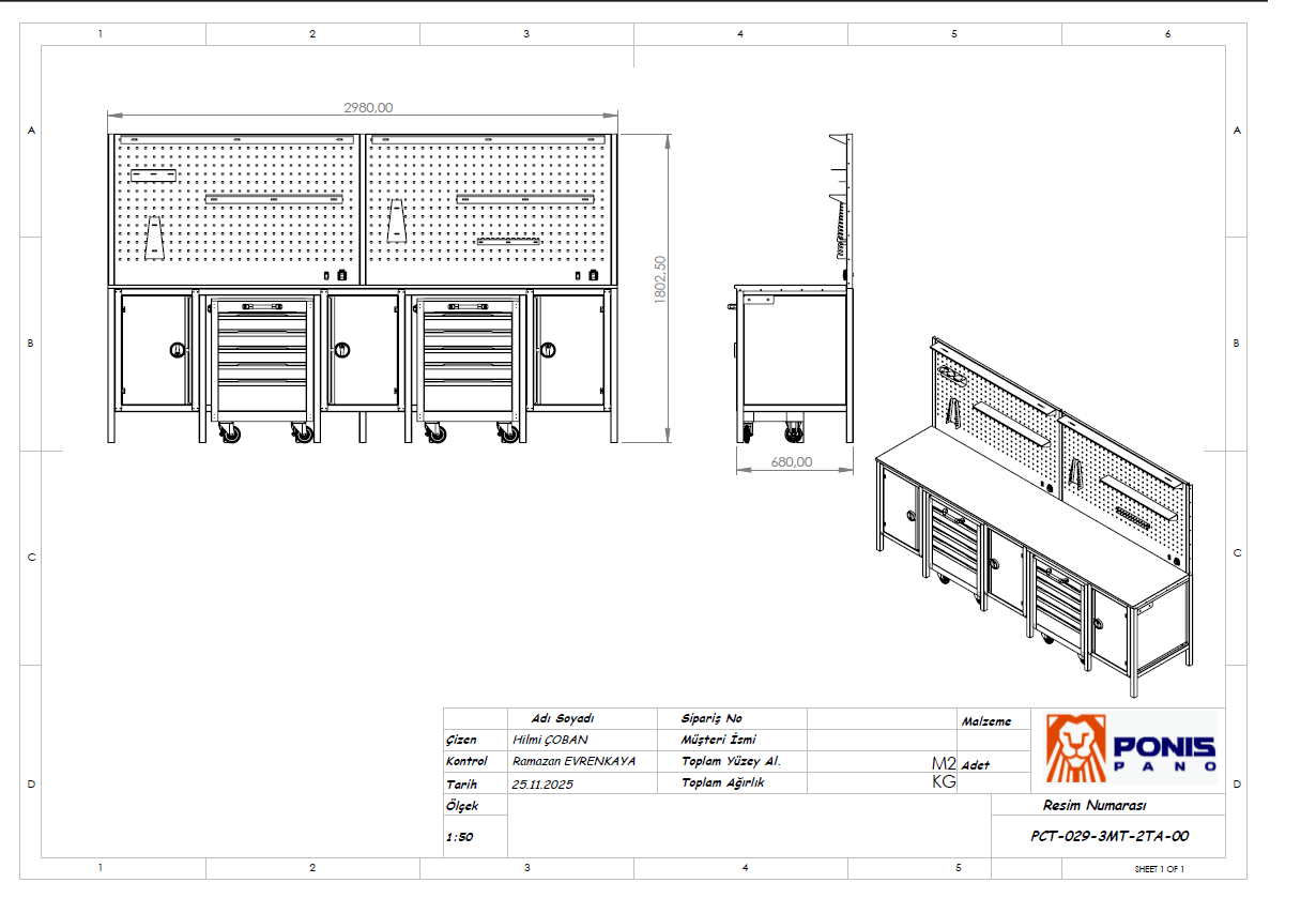 3 Metre 10 Çekmeceli Dolaplı Çalışma Tezgahı