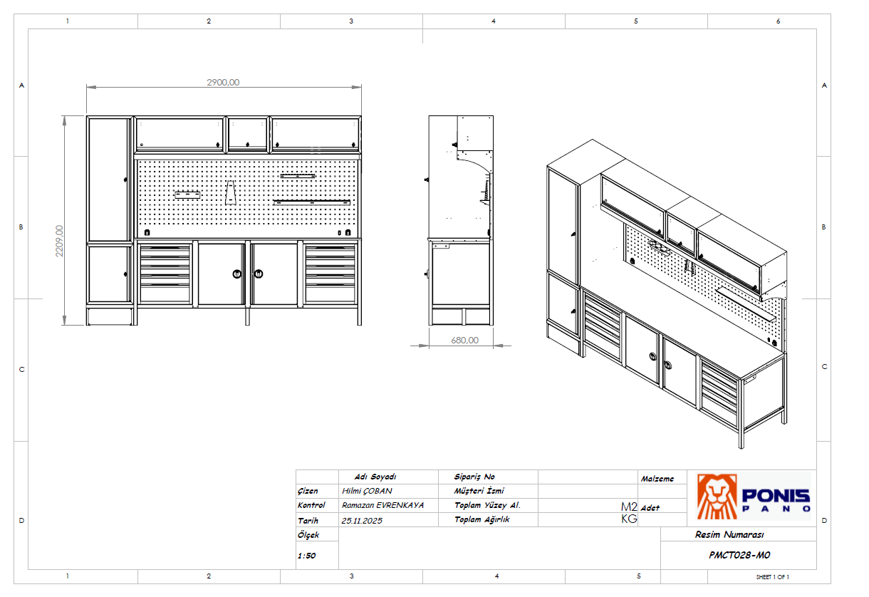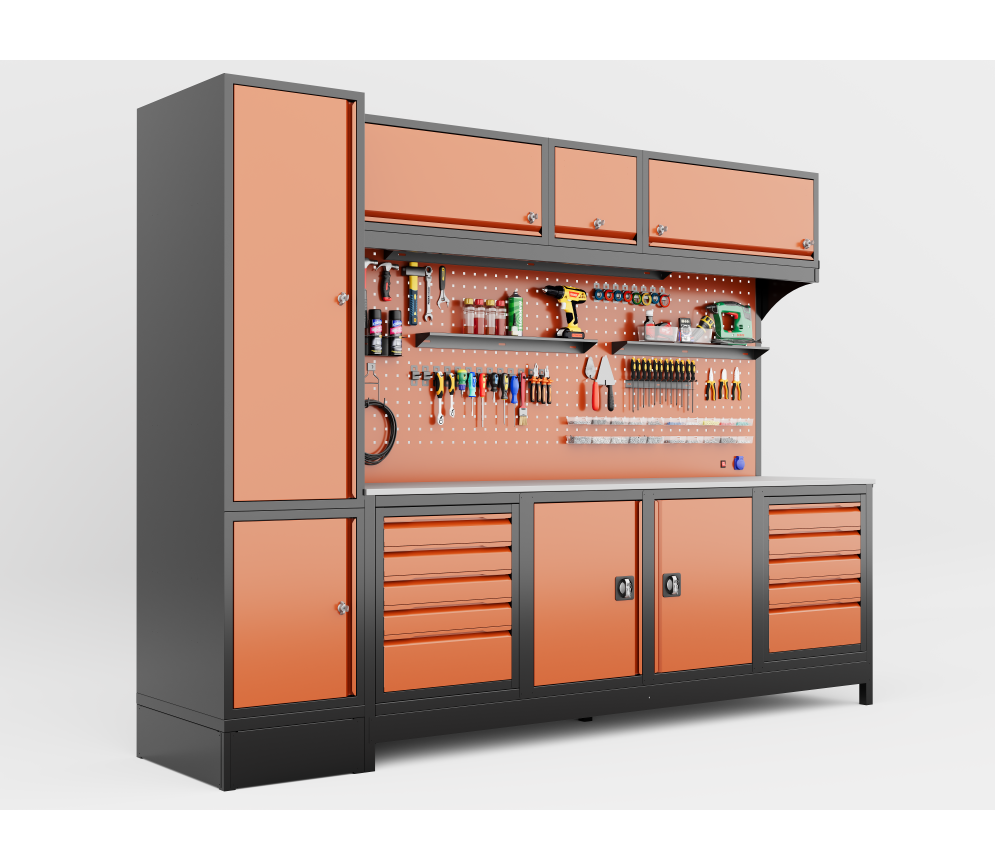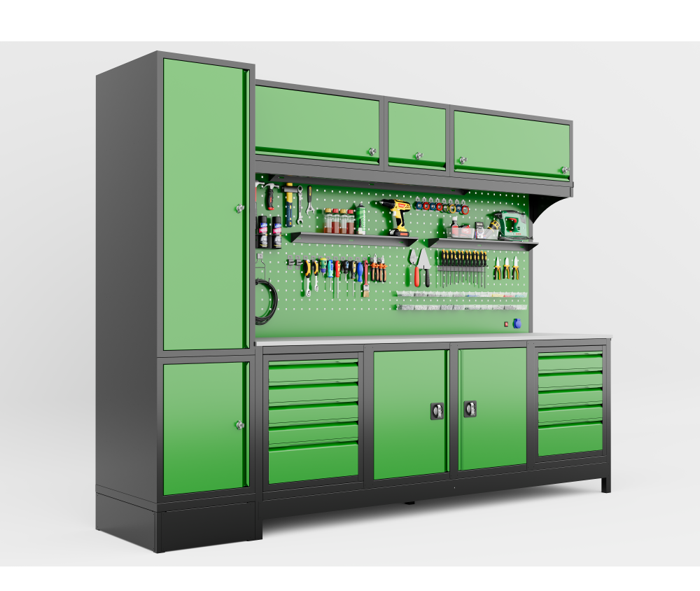 3 Metre Üst Dolaplı Modüler Çalışma Tezgahı