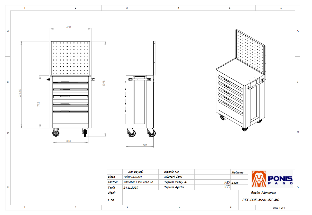 5 Çekmeceli Panolu takım arabası