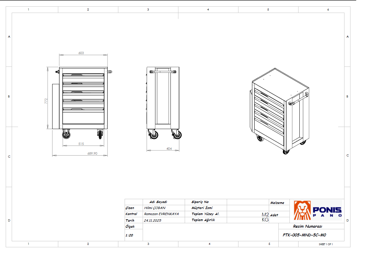 5 Çekmeceli Panolu takım arabası